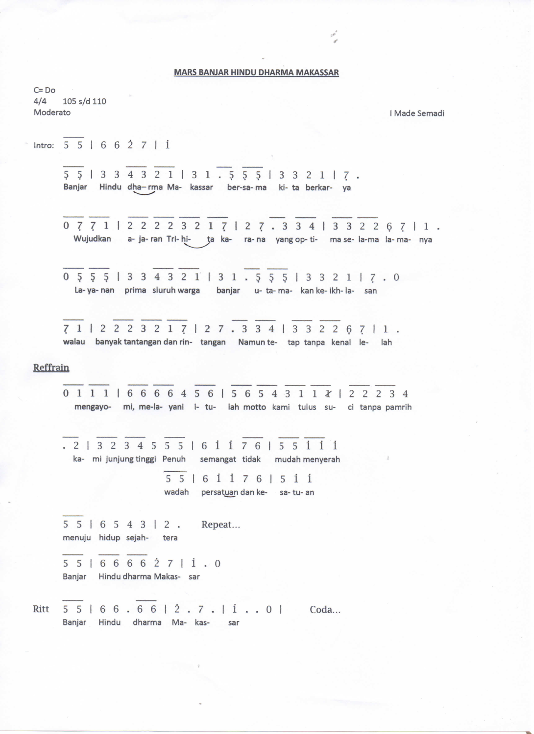 MARS BANJAR HINDU DHARMA MAKASSAR